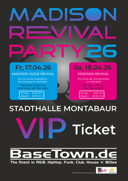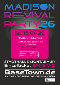 • Samstagabend: Die original MADISON Revival-Party, wie Sie sie bisher kennen.